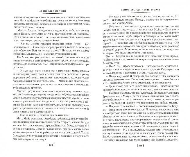 Самый популярный роман знаменитого прозаика Арчибальда Кронина. Многим известна английская пословица "Мой дом - моя крепость". И узнать тайны английского дома, увидеть "невидимые миру слезы" мало кому удается. Однако дом Джеймса Броуди стал не крепостью, для членов его семьи он превратился в настоящую тюрьму. Из нее вырывается старшая дочь Мэри, уезжает сын Мэт, а вот те, кто смиряется с самодурством и деспотизмом Броуди - его жена Маргарет и малышка Несси, - обречены... Пять причин купить 1Арчибальд Кронин - прославленный автор, классик литературы XX века, чьи произведения заслужили всемирное признание и любовь, а также неоднократно экранизировались. 2«Замок Броуди» - один из самых известных произведений писателя. Книга сразу после публикации стала бестселлером и позволила Кронину оставить медицинскую практику ради литературы. 3Роман раскрывает тему взаимоотношений отцов и детей. Деспотичный глава семейства держит в страхе свою семью - история, которая не теряет актуальность по сей день. 4Образец идеального социального романа. Кронин безжалостно демонстрирует на примере Джеймса Броуди, к чему может привести погоня за мнимым общественным одобрением. 5Книга станет отличным подарком как для поклонников творчества Арчибальда Кронина, так и для читателей, только открывающих для себя этого уникального писателя.