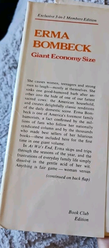 This vintage book by Erma Bombeck titled "Giant Economy Size" is a must-have for any book collector or fan of classic humor. With its humorous illustrations and witty narrative, this nonfiction book is sure to bring a smile to anyone's face. Published by Nelson Doubleday in the 1970s, this book is a great addition to any collection. The book measures 3 inches in width and features an illustrated cover. It is written in English and is perfect for anyone who appreciates vintage humor. This item is not ex libris or inscribed, and was printed in the United States. Don't miss out on the chance to own this rare gem!