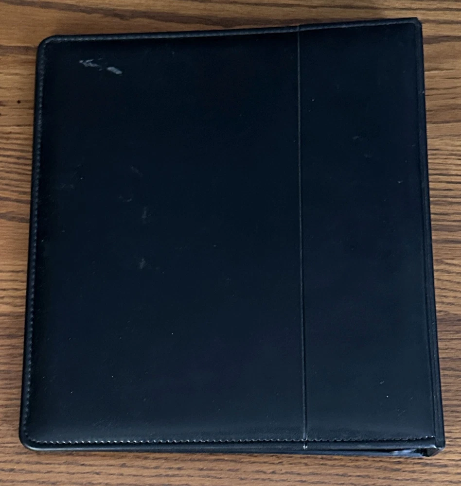 This is an NBC AFFILIATE SERVICES MANUAL BLACK LEATHER 3-RING BINDER. The binder is empty and opens and closes without difficulty. It is undated but comes from from 1994 and was obtained from a prior NBC employee. The dimensions are 11.25 x 10" with a thickness of 2". It is in Very Fine condition with some indentations and an area of light color loss on the top left back cover corner. Comes from a smoke-free home. Will combine shipping, which is always FREE! Visit the Prime Time Treasure Ebay Store for more amazing treasures, updated daily!