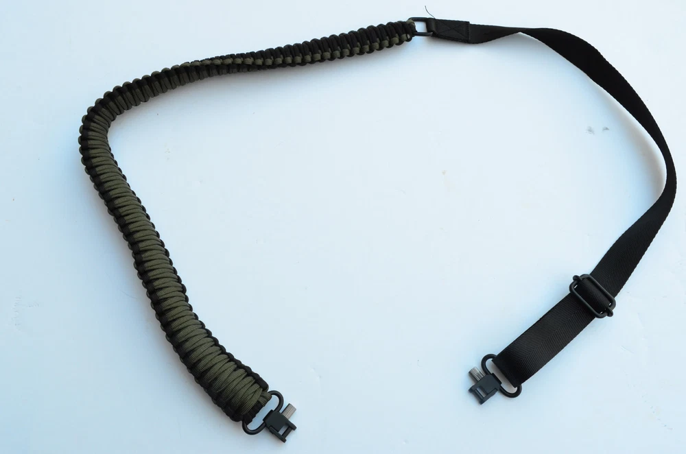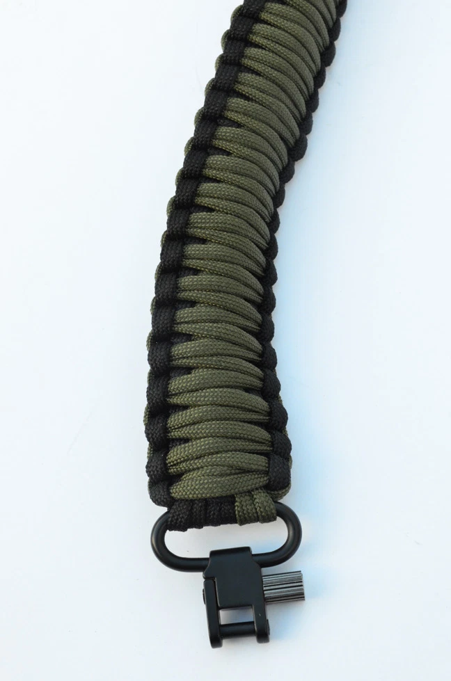 Weare an American family owned and operated small business. Acid Tactical ® 550 Paracord Sling Swivel Stud connectors - Green Black (GUNIS NOT INCLUDED - yes we have to mention this) OurParacord slings are hand made using 80ft of durable 550 Paracord in acobra weave with aluminum clasps and ABS connectors. They canbe used with real rifles & shotguns, Airsoft guns, andPaintball rifles. They are also great for use with crossbowsand airguns. Includes: 1 Paracord sling - Green Black Specifications : Two Point Sling - Sling Swivel Stud Attaching. (Many rifles have built in stud for accepting these types of swivels.) Aluminum & Steel hardware Adjustable up to 47" long CHECK THEM ALL OUT 1 POINT SLINGS 2 POINT SLINGS MULTI-POINT SLINGS COMPASS / SURVIVAL SLINGS Shipping: ALWAYS FREE SHIPPING in the USA. Most of our items arrive within 2-4 businessdays. If our item does not arrive in 4 business days or less please contactus immediately. Returns:All returns accepted within 30 days of sale. Buyer responsible for all return shipping costs where Acid Tactical isnot at fault. A 20% restocking fee is assessed on purchases where Acid Tactical isnot at fault. If you have a problem with an item,please contact us. We are a small company, we are human, weoccasionally make mistakes. USPS occasionally misdirects packages. Give us the chance to correctany problems by messaging us first. We accept all major credit cards withdirect checkout. Paypal is also accepted. Many Colors and Styles Available. CLICK HERE to SEE!!
